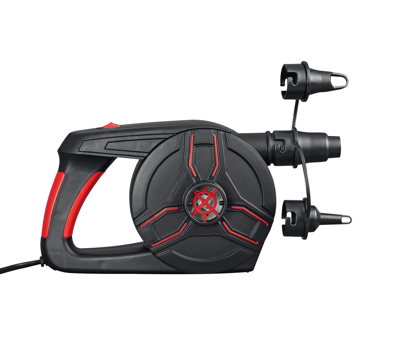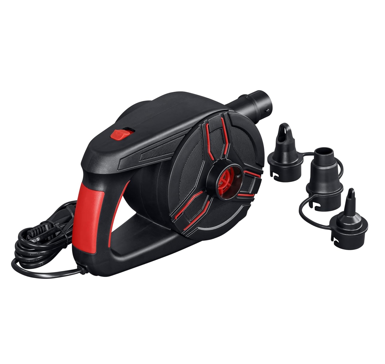 Bomba de Aire Eléctrica con función de inflado y desinflado, presión de hasta 0.97 PSI, cámara de aire de alta capacidad y 3 adaptadores de válvula.