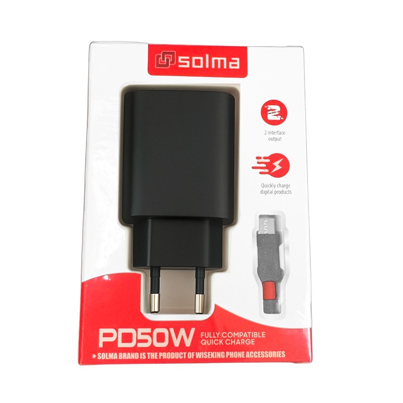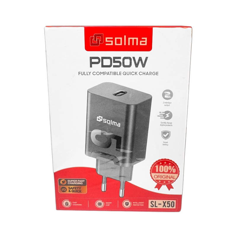 Cargador Carga Rapida Solma 50w Sl-x50 + Cable Tipo C Negro